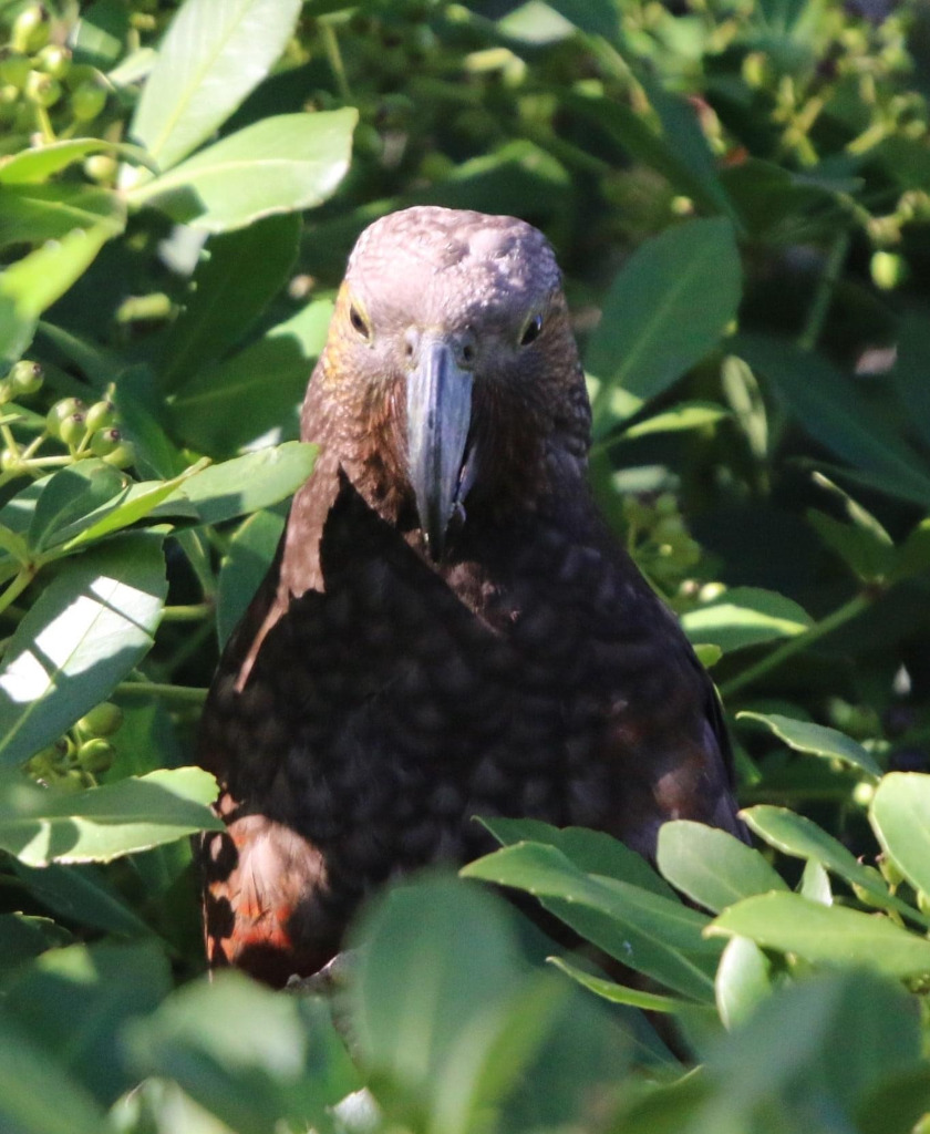 Known as the ‘clown of the forest’, the North Island kākā is a large forest parrot that is distributed throughout the North Island. It is a relative of the kea, the South Island alpine parrot. People often hear the loud screeching noises of the kākā before they see them. They feed on flowers, nectar, sap, and invertebrates living under tree bark. Kākā nest in tree hollows, which makes nesting females especially prone to predation from mustelids and possums.