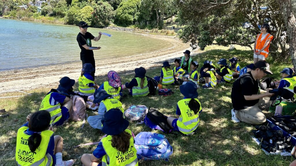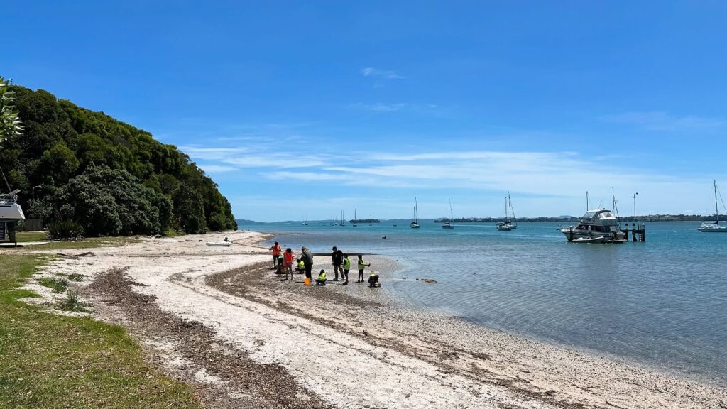 In December 2024, we conducted a second trip, this time across the channel at Shelly Beach. Students learned about flora and fauna of the area and conducted five-minute bird surveys. Additionally, students undertook Marine Metre Squared surveys along the shoreline. Students were treated to a visit from three dotterels which had flown over the water from Clifton Road. They also saw godwits near the shoreline as they walked across Shelly Beach at low tide to finish their day at Cockle Bay Beach.